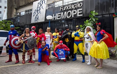 Com o objetivo de reforçar a campanha de doação de sangue no período carnavalesco, o Hemope Recife recebeu, no último dia 23 de janeiro, a visita especial do grupo de super-heróis solidários do bloco “Enquanto isso na sala da justiça”. O encontro aconteceu no hemocentro, localizado na Rua Joaquim Nabuco, no bairro das Graças e, para não faltar frevo aos doadores presentes, ainda contou com a Orquestra do Maestro Macaíba.