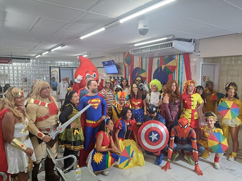 Em mais uma ação da Campanha de Carnaval, a Fundação de Hematologia e Hemoterapia de Pernambuco (Hemope) recebeu presenças especiais na manhã desta quinta-feira (29). O hemocentro foi palco da tradicional visita dos super-heróis solidários, integrantes da Liga dos Super Amigos, que levaram alegria e conscientização ao público, chamando a atenção para a importância da doação de sangue e para a manutenção do estoque estratégico da instituição.